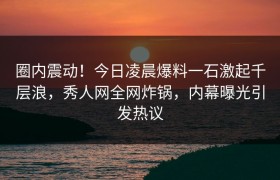 一场突如其来的爆料,激荡全网 凌晨的第一缕曙光未至,网络已被一条震撼消息刷屏。一名圈内人士在某知名平...